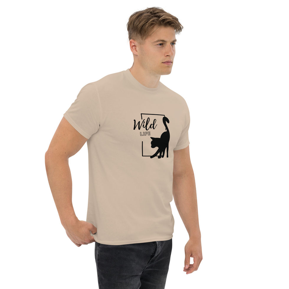 Das klassische Wild Life Katzen Unisex-T-Shirt aus 100 % Baumwolle sorgt für eine gerade Linie. Es sitzt schön, behält klare Linien an den Kanten und passt perfekt zu mehrschichtigen Streetwear-Outfits. Außerdem ist es jetzt besonders im Trend!